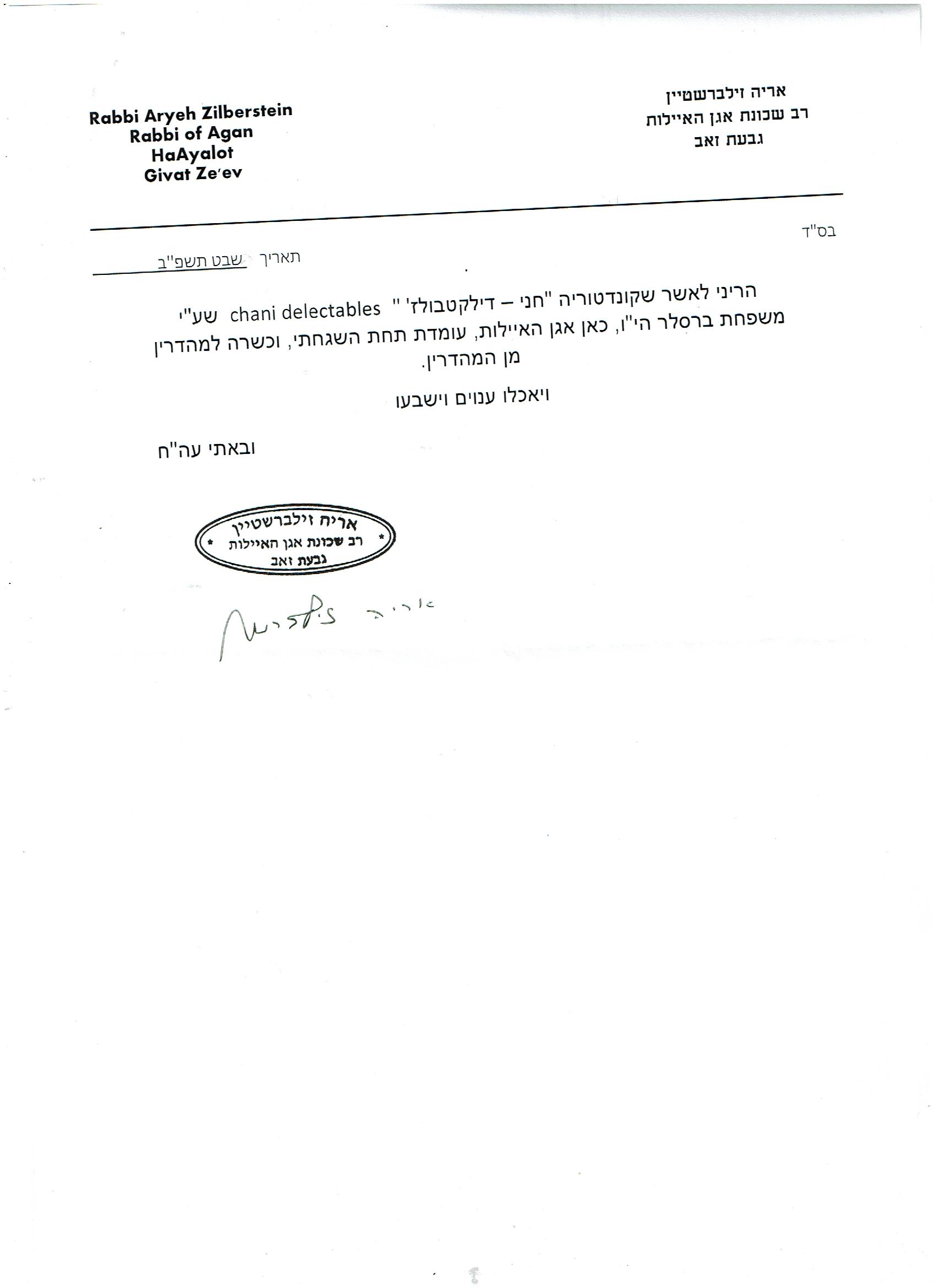Delivery is $15 in Jerusalem and Givat Zeev (old city Jerusalem - $20)